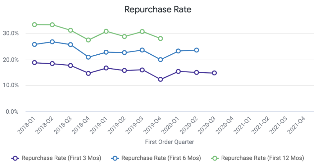 Statistically speaking, the 3-month repurchase rate captured over 80% of the variance of the full 12-year repurchase rate, making the 3-month repurchase rate a great leading indicator for retention. Now, rather than waiting 9 months to see impact, we can measure the impact within a quarter!